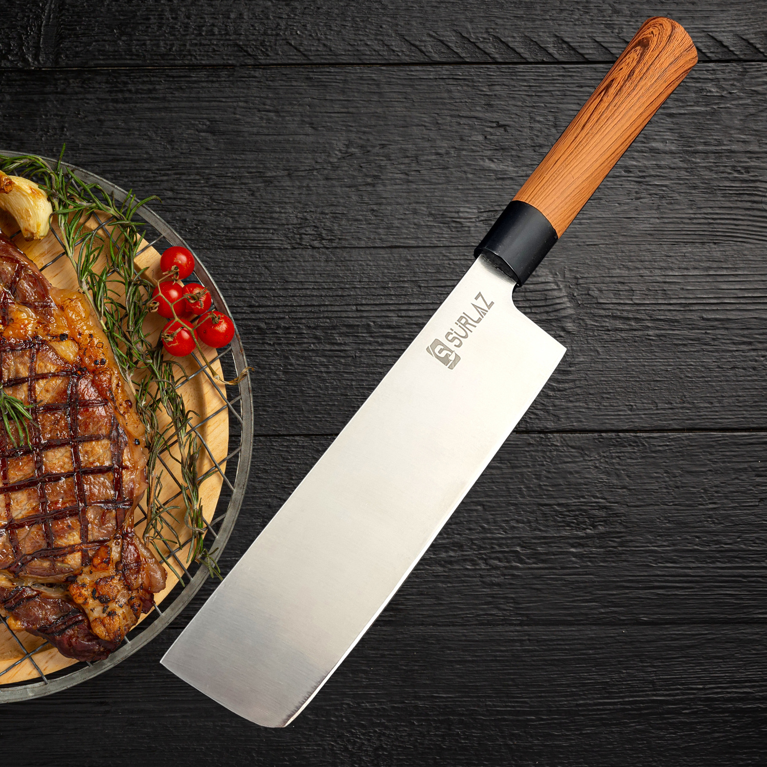 Orijinal fiyat: ₺1.132,06.₺990,56Şu andaki fiyat: ₺990,56.SürLaz Sürmene Dövme Çelik Mutfak Şef Bıçağı Almazan Serisi Kılıf Hediyeli