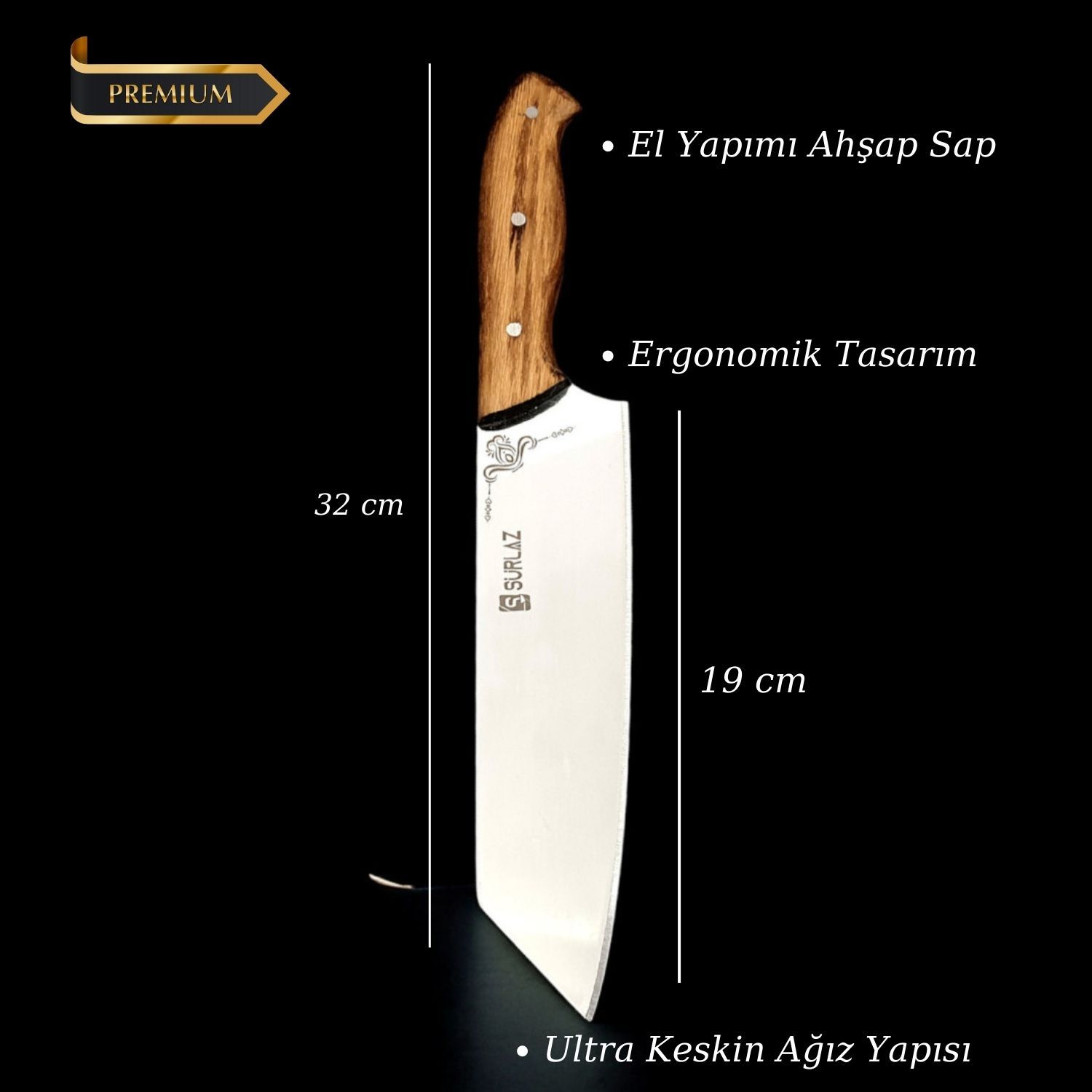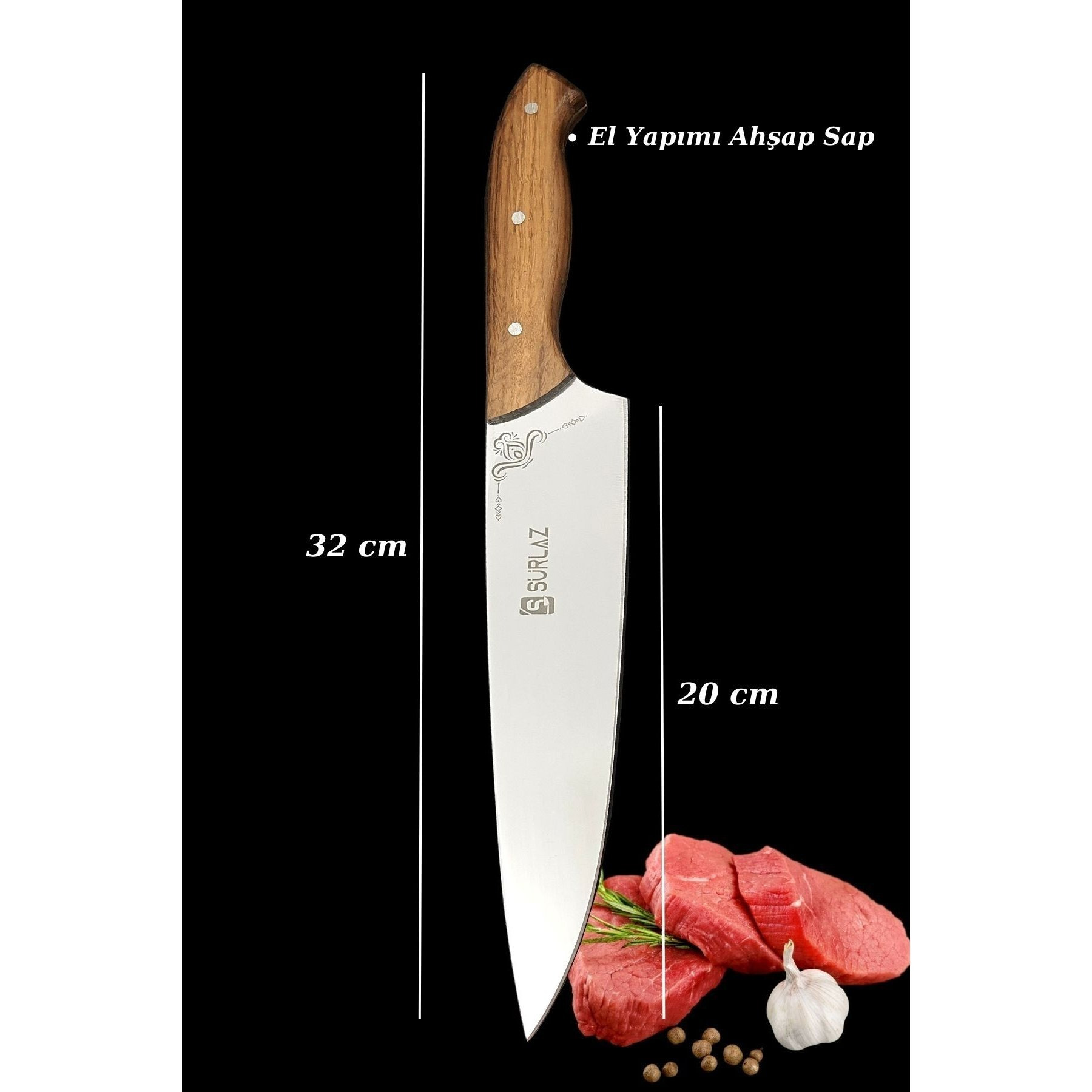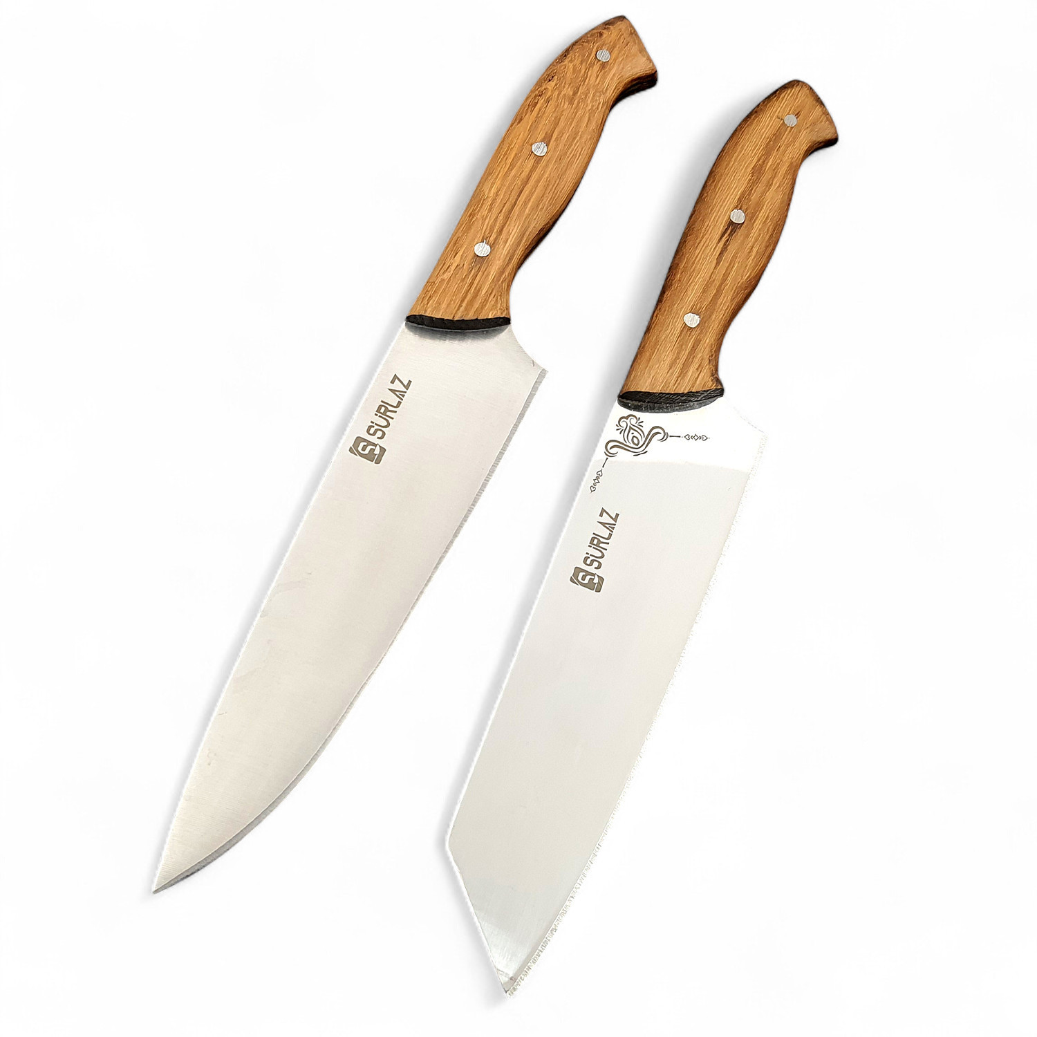 Sevdiklerinize şıklığı ve profesyonelliği bir arada sunun! SÜRLAZ 2’li Şef Bıçağı Hediye Seti, yüksek kalite paslanmaz çelik ve el yapımı ahşap sapları ile mutfak tutkunları için mükemmel bir seçimdir. Set İçeriği: 2 farklı şef bıçağı (32 cm) Klasik Şef Bıçağı (20 cm bıçak uzunluğu) – Et, sebze ve günlük mutfak işleri Köşeli Şef Bıçağı (19 cm bıçak uzunluğu) – Hassas kesim ve şık sunumlar için ideal Sap Malzemesi: El yapımı doğal ahşap, ergonomik tutuş Bıçak Malzemesi: Dayanıklı paslanmaz çelik, ultra keskin ağız yapısı Kullanım Alanı: Ev mutfağı, restoran, şefler, hobi mutfakları Hediye Seçeneği: Özel kutulama ile doğum günü, yıl dönümü, düğün ve özel günlerde unutulmaz bir hediye Mutfakla ilgilenen sevdiklerinize verebileceğiniz en şık ve kullanışlı hediye. Profesyonel kaliteyi mutfağa taşıyın, özel anlara değer katın. SÜRLAZ 2’li Şef Bıçağı Seti – Profesyonel kalite, şık tasarım ve unutulmaz bir hediye!